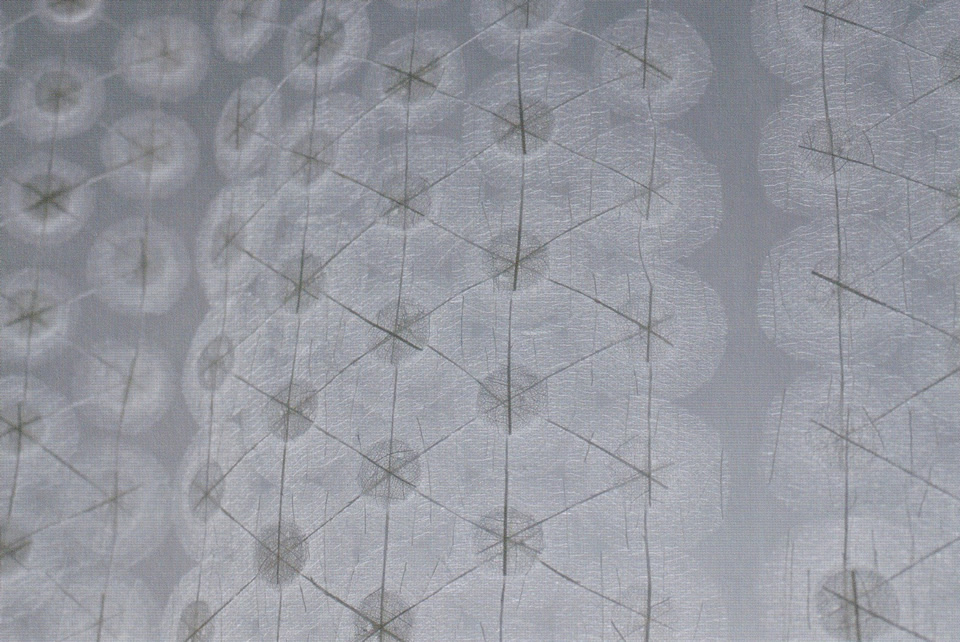 川島テキスタイルスクールにて染織を学び、在校中より葉脈を縫い合わせた造形作品を制作しています。